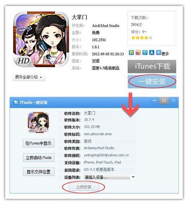 iTools 小白化的管理操作讓果粉使用起來更容易上手。簡單一步就能將游戲軟件安裝到蘋果,管理的圖片、信息等資料文件均可通過鼠標拖拽輕松實現(xiàn),充分迎合果粉們的使用習慣。