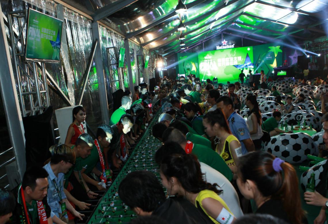 在決賽開始前,喜力啤酒更準(zhǔn)備了精彩的表演和豐富的互動節(jié)目。主舞臺上熱力四射的表演贏得了在場球迷的陣陣歡呼,在臺下的擂臺區(qū),喜力桌上足球歐冠賽的全國總決賽也鳴槍開戰(zhàn)。分別來自大連、廣州、長春、廈門、常州及去年衛(wèi)冕冠軍廣州隊(duì)的六支隊(duì)伍的好手奮力廝殺突出重圍,觀戰(zhàn)的球迷也激情助力搖旗吶喊,最終衛(wèi)冕冠軍廣州隊(duì)在開場不利的形勢下反敗為勝,蟬聯(lián)2013年度桌上歐冠賽的總冠軍,贏得壹萬元現(xiàn)金大獎。而場地內(nèi)另一個聚焦關(guān)注的大亮點(diǎn),當(dāng)屬長達(dá)40米的喜力桌上足球賽球桌,即時啟動的桌上足球挑戰(zhàn)賽,容納50對50人同場競技,PK挑戰(zhàn)無極限,百人對戰(zhàn)的宏大場面將賽前活動推向另一個高潮。