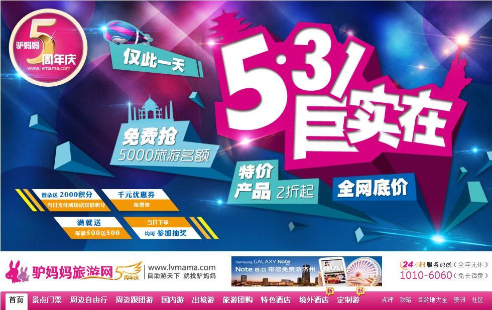 而且,驢媽媽這次在5周年店慶促銷時(shí)間選擇上,也頗費(fèi)心思。5月31日這個(gè)節(jié)點(diǎn),恰好正逢6月旅游消費(fèi)的小淡季,同時(shí)又趕在迎接暑期旅游高峰前,此時(shí)進(jìn)行整合營銷造成規(guī)模效應(yīng),這對淡季促銷和暑期預(yù)熱起到雙重作用,對消費(fèi)者來說也能得到實(shí)際優(yōu)惠。