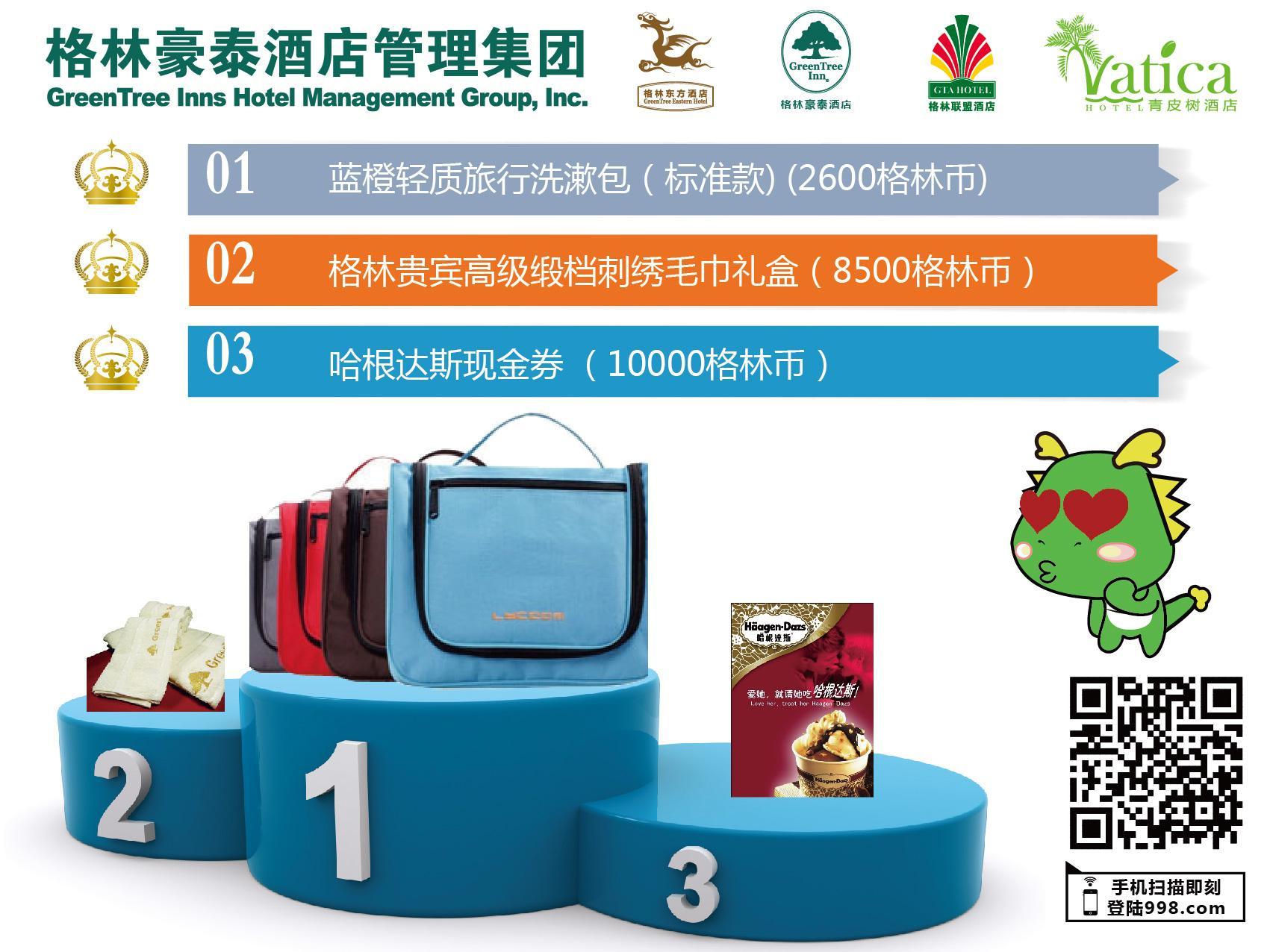 格林豪泰相關(guān)負(fù)責(zé)人表示,格林幣就像我們?cè)阢y行存款的利息,這是額外獎(jiǎng)金,是格林豪泰對(duì)會(huì)員的感恩回饋。使用格林幣,客人可以登錄格林豪泰官網(wǎng)www.998.com,免費(fèi)兌換旅行用品、時(shí)尚數(shù)碼產(chǎn)品、家居生活用品、戶外運(yùn)動(dòng)用品、酒店豪華客房等100多種精美商品。