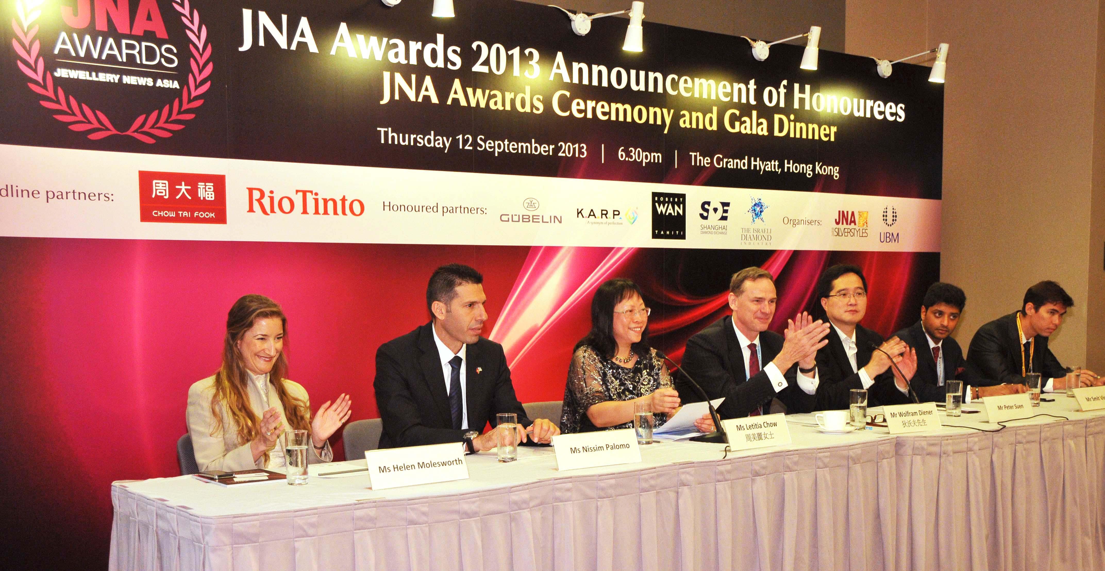 JNA 大獎(jiǎng)是亞洲地區(qū)珠寶業(yè)一項(xiàng)國(guó)際盛事,獎(jiǎng)項(xiàng)旨在嘉許有優(yōu)秀表現(xiàn)的業(yè)內(nèi)人士和企業(yè),表?yè)P(yáng)他們?yōu)閬喼薜貐^(qū)珠寶業(yè)所作出的貢獻(xiàn)。大獎(jiǎng)?lì)C獎(jiǎng)典禮暨晚宴將于2013年9月12日(星期四)在香港君悅酒店舉行。