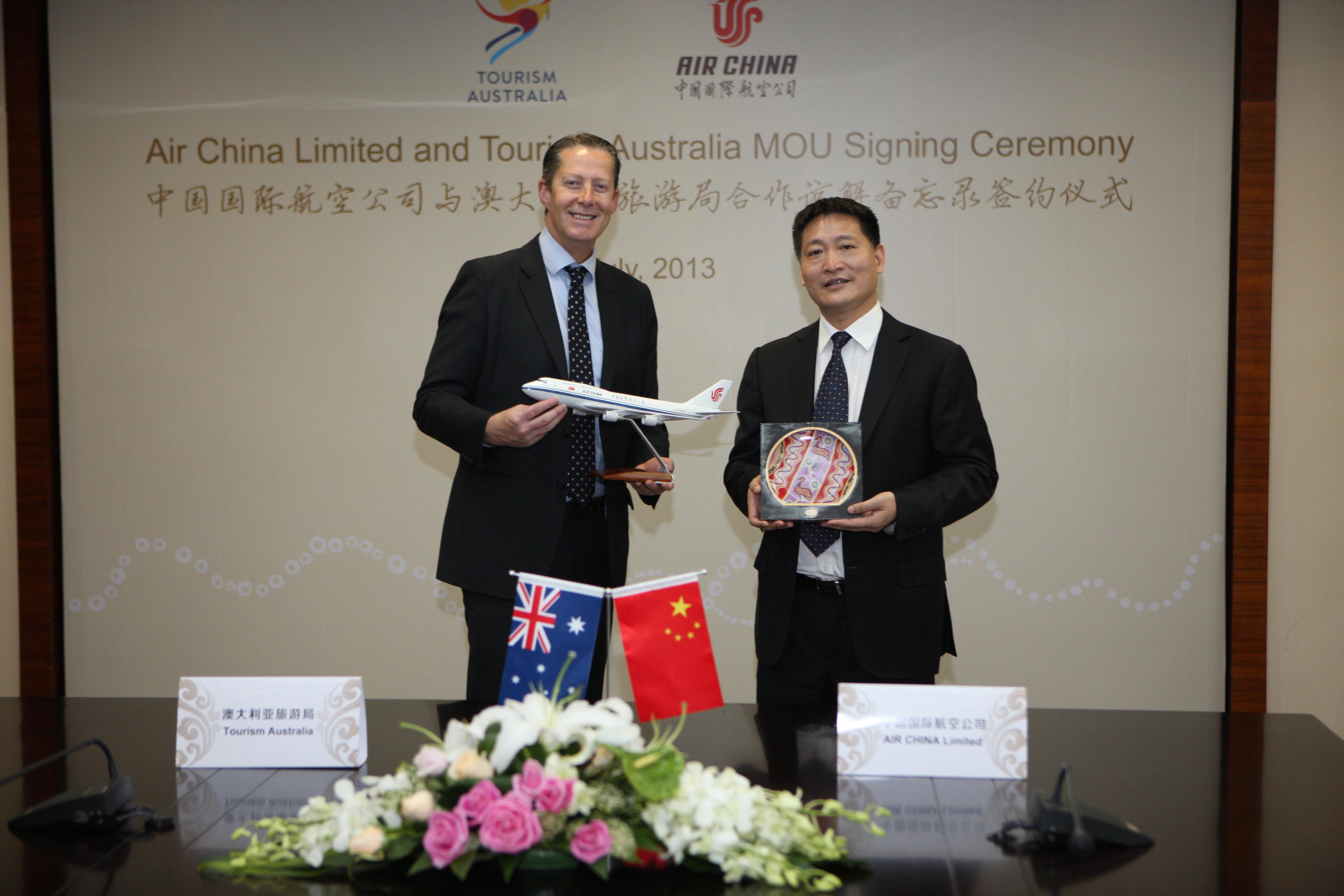 北京2013年7月2日電 /美通社/ -- 2013年7月1日,中國國際航空股份有限公司(以下簡稱“國航”)與澳大利亞旅游局(以下簡稱“澳旅局”)舉辦合作諒解備忘錄簽字儀式,雙方高層就赴澳旅游市場推廣及航空運力優(yōu)化配置達(dá)成協(xié)議。國航副總裁王明遠(yuǎn)及澳旅局行政總裁麥勤偉(Andrew McEvoy)代表雙方簽署了備忘錄。