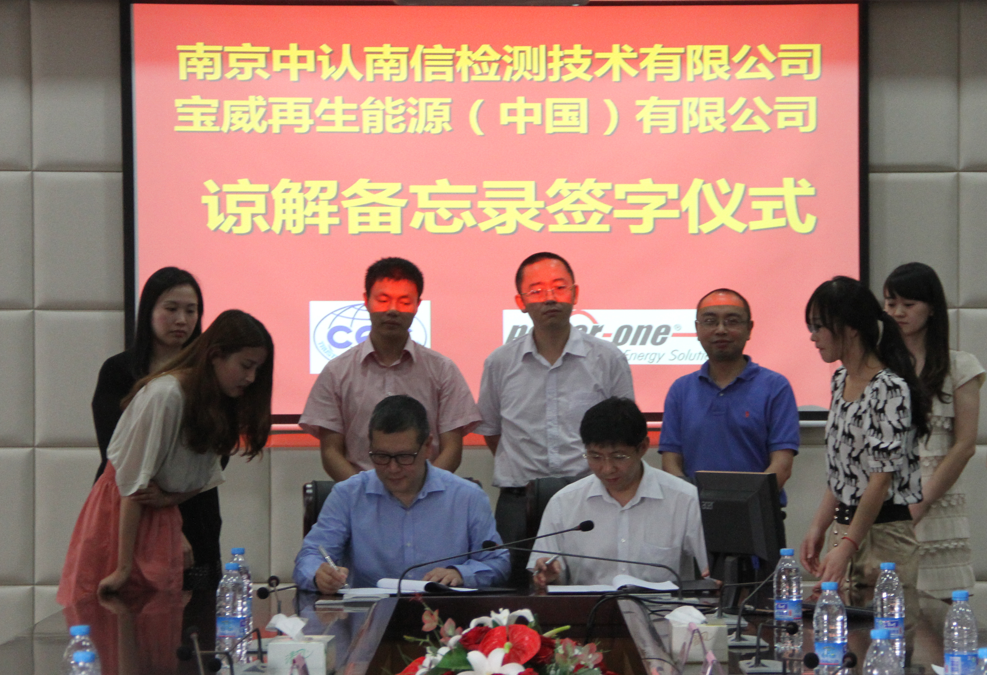 南京2013年7月10日電 /美通社/ -- 7月9日中國質量認證中心(CQC)所屬、中國新能源領域內專業(yè)第三方技術服務機構 -- 中認南信檢測技術有限公司(CQCTT)與全球較大的光伏逆變器生產商之一 -- 美國寶威再生能源(中國)有限公司(Power-One)在南京簽署合作諒解備忘錄,確立了雙方的戰(zhàn)略伙伴關系,并在此基礎上發(fā)展更加緊密的平等合作關系。