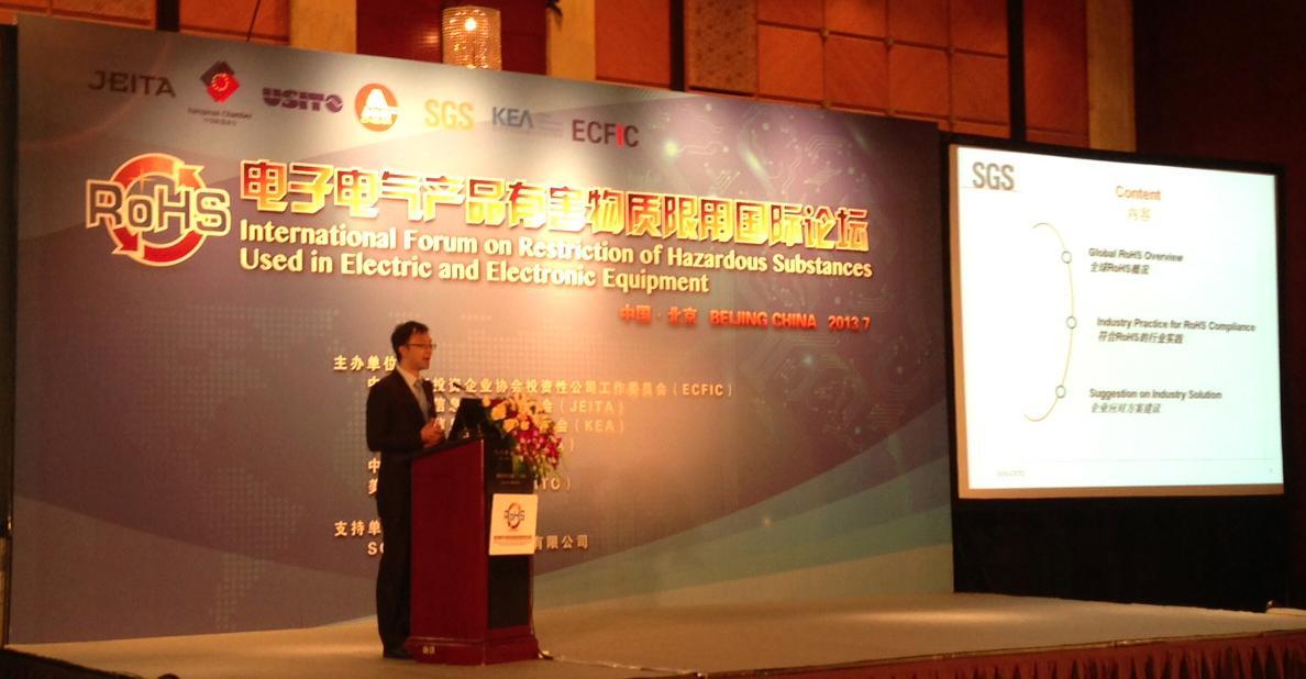 上海2013年8月1日電 /美通社/ -- 近日,全球領(lǐng)先的檢驗、鑒定、測試和認證機構(gòu)SGS通標標準技術(shù)服務(wù)有限公司(以下簡稱SGS)攜手中國外商投資企業(yè)協(xié)會投資性公司工作委員會(以下簡稱ECFIC)、中國歐盟商會(簡稱EUCCC)等在北京成功舉辦“電子電氣產(chǎn)品有害物質(zhì)限用國際論壇”。本次論壇共吸引百余位來自國內(nèi)外制造商、出口商及相關(guān)協(xié)會機構(gòu)人員參加,旨在與政府部門負責人、全球環(huán)保技術(shù)專家共同探討國內(nèi)外限用物質(zhì)管理現(xiàn)狀及發(fā)展方向,搭建國際交流與政府互通平臺,共同探索中國限用物質(zhì)管理模式。