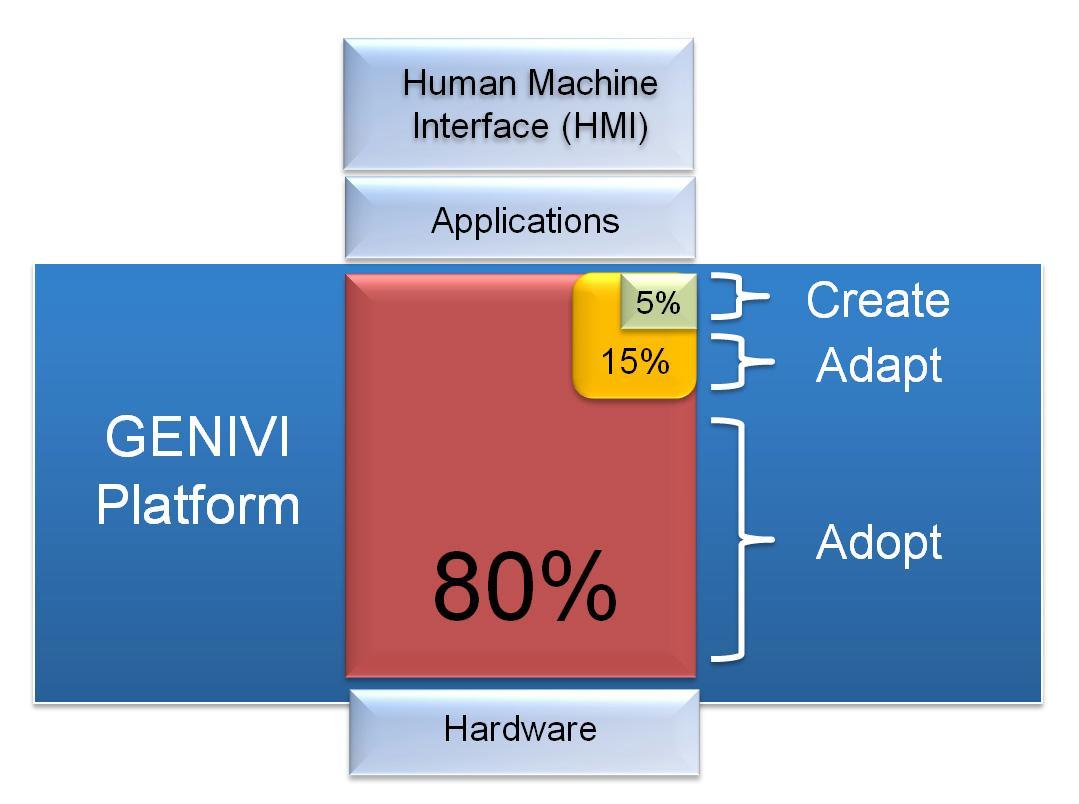 GENIVI 規(guī)范剩余5%的代碼對于車載信息娛樂系統(tǒng)而言非常獨(dú)特,現(xiàn)在還沒有這樣的開源項(xiàng)目存在。