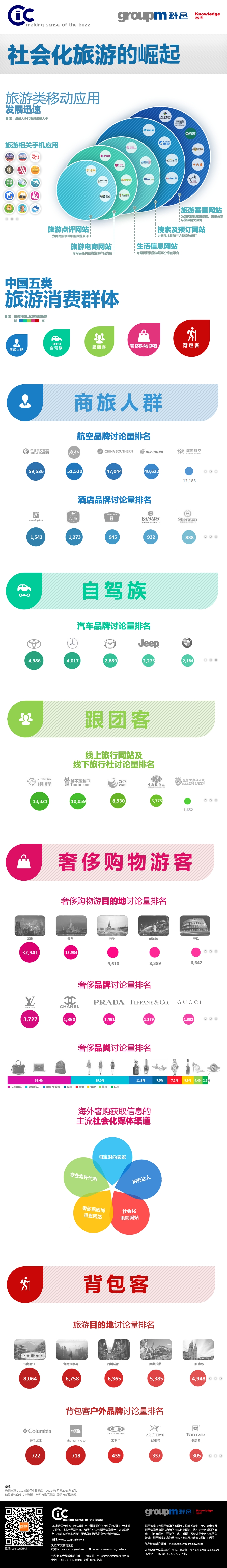 上海2013年9月11日電 /美通社/ -- 媒介投資管理集團(tuán)群邑旗下群邑智庫與社會化商業(yè)資訊提供商CIC今日正式發(fā)布2013旅游行業(yè)白皮書《社會化旅游的崛起》。該白皮書通過收集和深入分析社交媒體討論以及相關(guān)信息,將中國旅行者分為五大類型,旨在幫助品牌更加精準(zhǔn)地制定市場戰(zhàn)略。