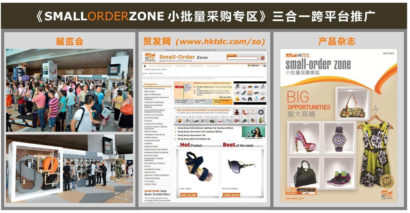 供應商透過展覽會密集式接觸買家;而展覽會后的推廣,則全年不間斷地進行。買家可登入貿發(fā)局的電子商貿平臺「貿發(fā)網」,在小批量專區(qū)(www.hktdc.com/so)搜尋供應商或產品,又或者透過該局出版的產品雜志繼續(xù)采購。結合書、網、展三大平臺的《小批量采購專區(qū)》,突破地域和時間限制,產生終年無休的協同效應。