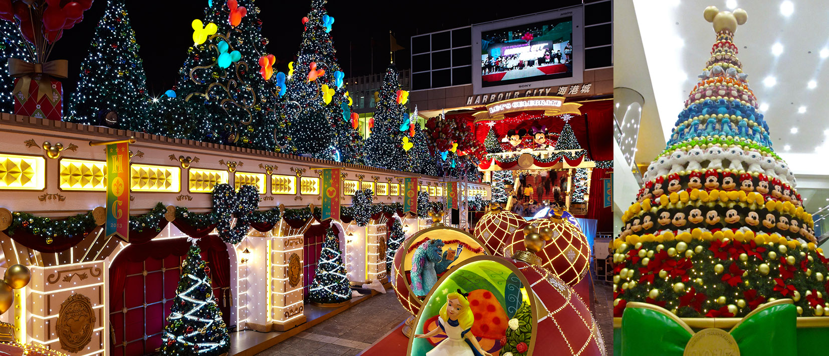 海港城今年再次與香港迪士尼樂(lè)園攜手為大家送上一個(gè)華麗圣誕舞會(huì)。360度全景華麗大宅以充滿圣誕氣氛的奢華裝飾為主調(diào)。超過(guò)30棵大大小小的圣誕樹遍布整個(gè)廣場(chǎng),而每棵圣誕樹上都掛滿別致立體的圣誕米奇頭掛飾,并系上七彩的圣誕絲帶。米奇與米妮雕像,亦以大宅主人身份,于海運(yùn)大廈正門口的露臺(tái)上歡迎賓客。大宅內(nèi)掛上多盞閃亮奪目的巨型水晶吊燈,讓賓客猶如置身于盛大的圣誕派對(duì)中。圣誕布置更從露天廣場(chǎng)伸延至海港城海運(yùn)大廈大堂,大堂中央會(huì)設(shè)置以超過(guò)200個(gè)不同迪士尼公仔組成的16尺高巨型圣誕樹,當(dāng)中包括米奇、米妮、大眼仔、毛毛、史迪仔、勞蘇、翠絲、胡迪、猴子阿拔、Mo仔、小飛象及 Marie,必定成為這個(gè)圣誕拍照熱點(diǎn)。