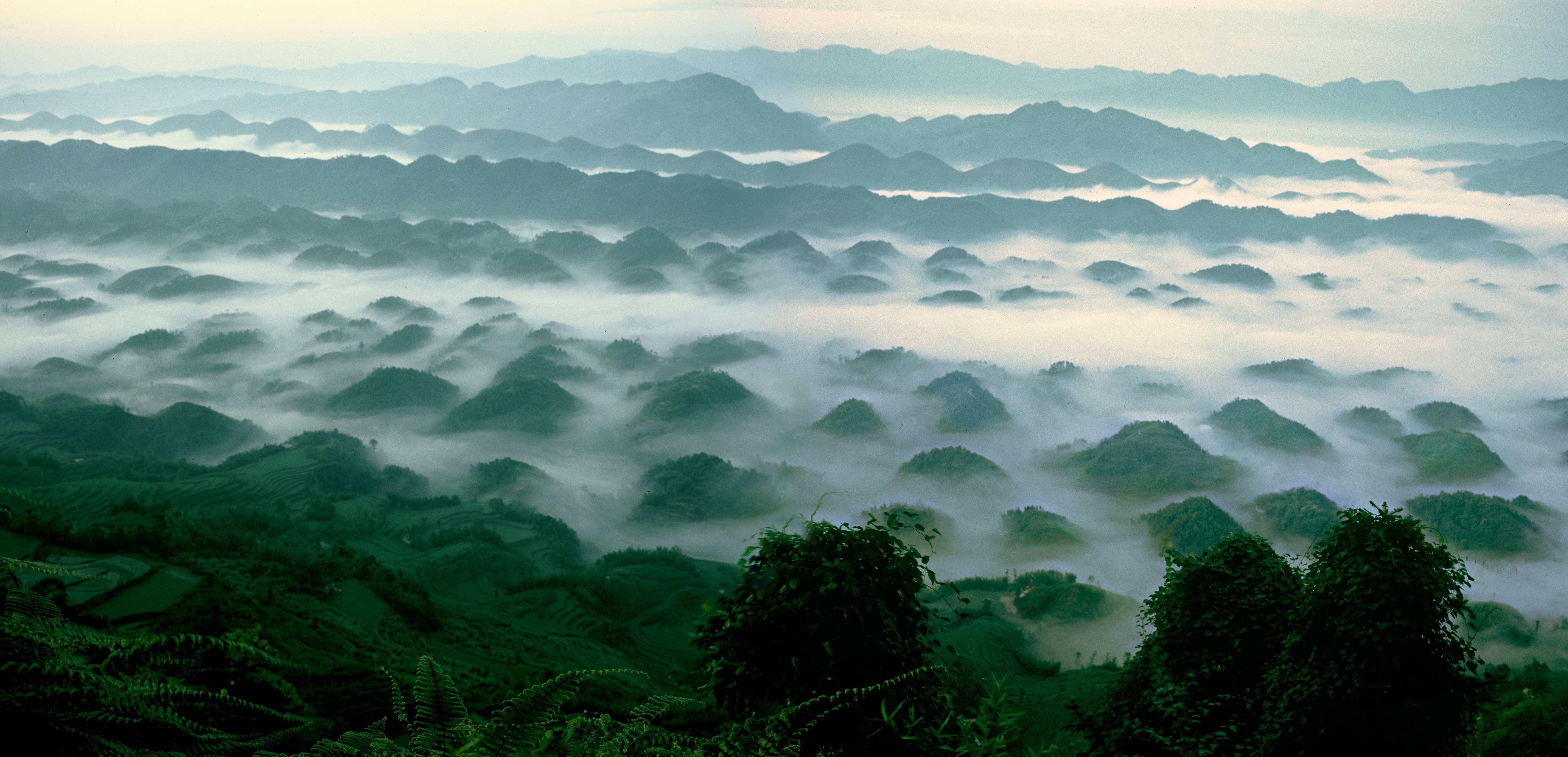 這張百龜拜壽的圖片其實大有來頭,在2008年北京奧運會開幕式上,這張照片就向全世界展示了“云山竹海 天上人間”的美麗畫面。時值冬季,已經(jīng)到了欣賞這一美景的較佳時節(jié),百龜印照在裊裊嵐霧中,變換莫測,讓人感覺飄飄欲仙。百龜拜壽可謂是蜀南竹海壯美全景的代表。